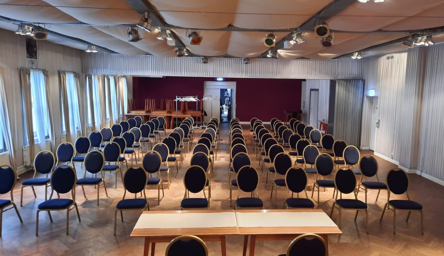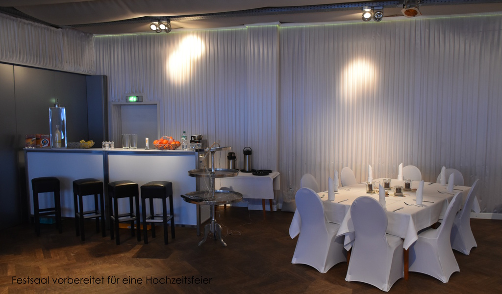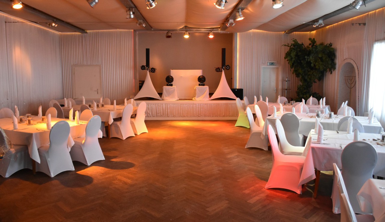 Der Saal lässt sich individuell ausleuchten, verfügt über kostenloses WLAN und bietet eine angenehme Atmosphäre für jede Gelegenheit.